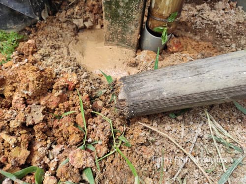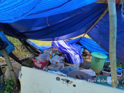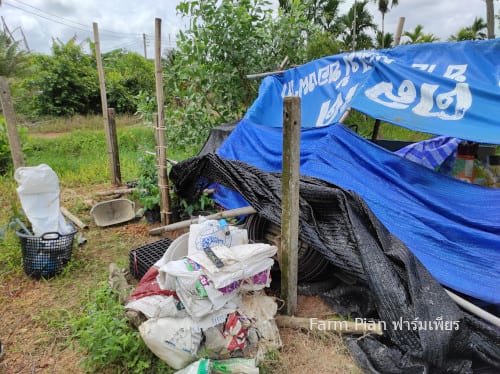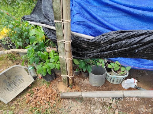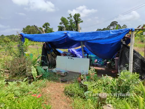 เพิงพักพิง ที่ทำเอาไว้ใช้พักผ่อน หลบแดด(หลบฝนได้บ้าง) พังเสียหายไปแล้ว เพราะลมฝนเมื่อคืนที่ผ่านมา วันนี้วางแผนไว้ว่าจะพ่นฉีดปุ๋ยน้ำ ธาตุอาหารเสริมให้กับฝรั่ง เงาะ เพื่อการทดสอบ ก่อนจะนำไปพ่นฉีดให้กับทุเรียน ก็เลยต้องพับแผนไป แล้วลงมือซ่อมเพิงพักพิง ขนำน้อยๆ เสียก่อน จะได้มีที่หลบแดด พักผ่อนได้บ้าง